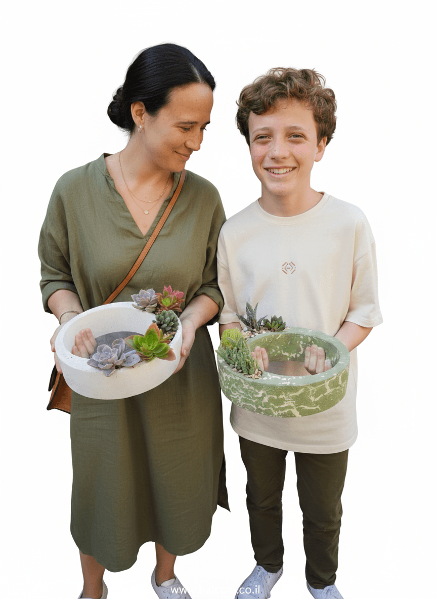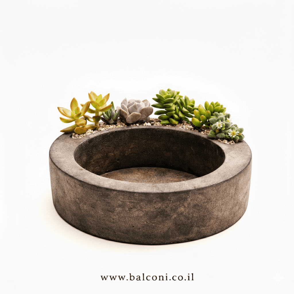 יצירת בטון בעבודת יד בצורת טבעת. ניתן לקבל את יצירת הבטון במגוון צבעים בתוספת צמחייה מהממת וחיפוי אבנים יפות. 🌿🌸