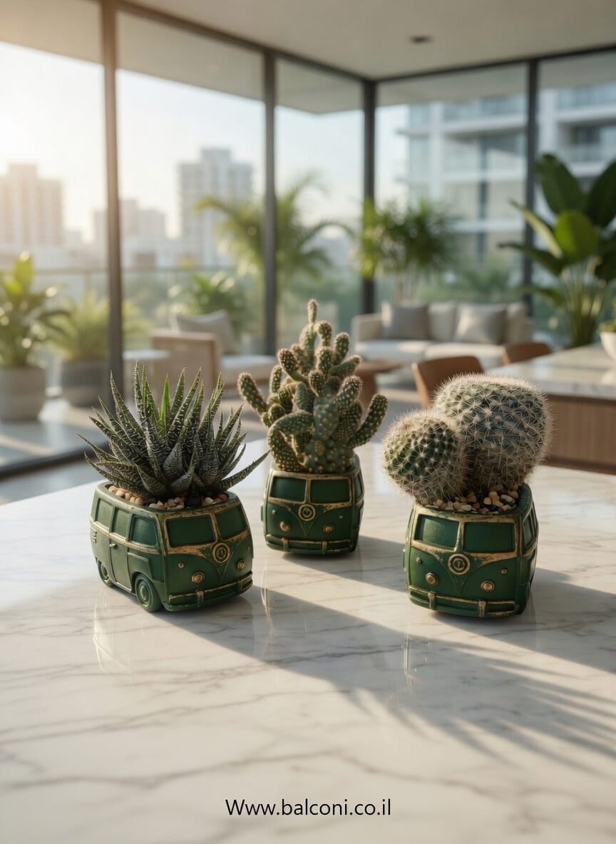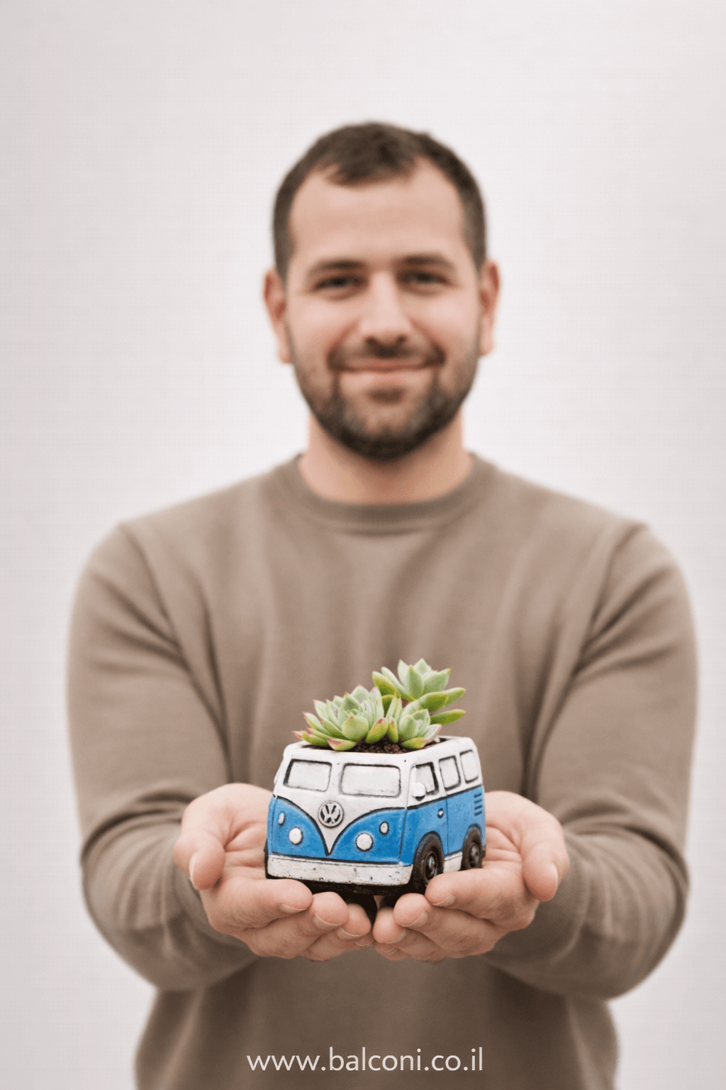 יצירת בטון בעבודת יד בצורת מכונית מדגם טרנספורטר של חברת פולקסווגן. באיסוף עצמי ניתן לקבל את יצירת הבטון בשלל צבעים, במשלוח תשלח יצירת הבטון בצבע אפור בתוספת צמחייה מהממת וחיפוי אבנים יפות.