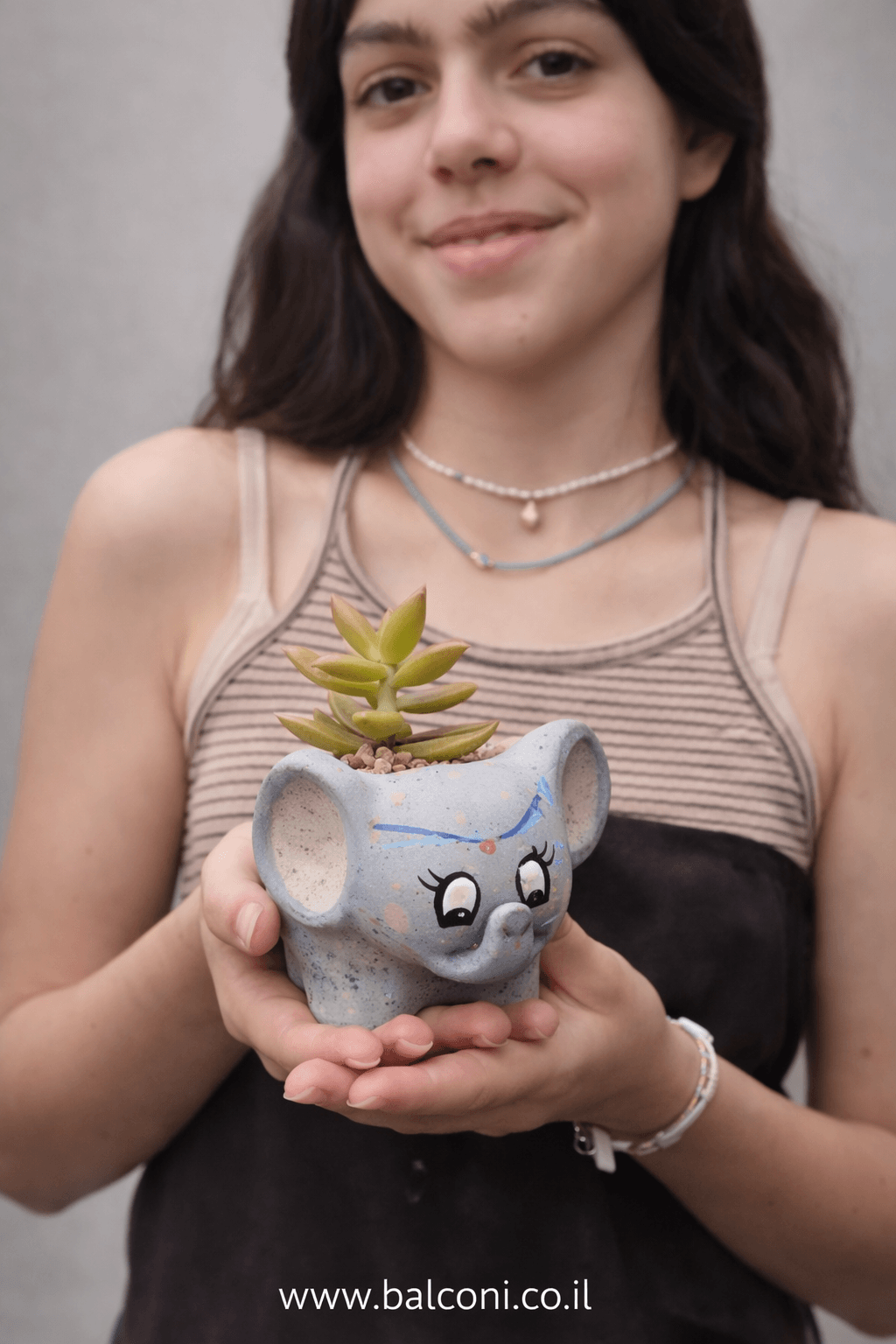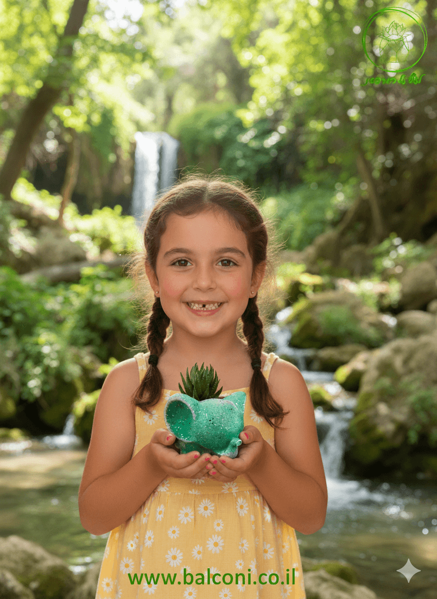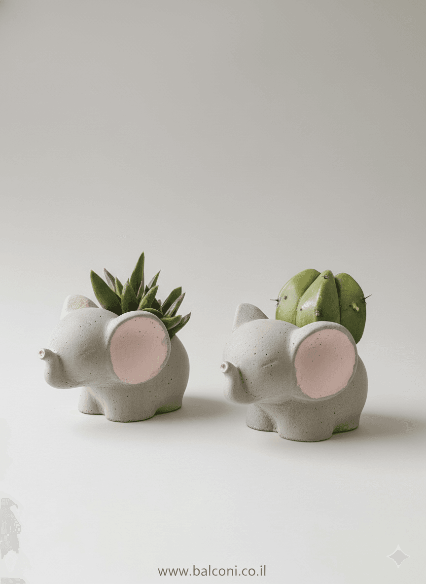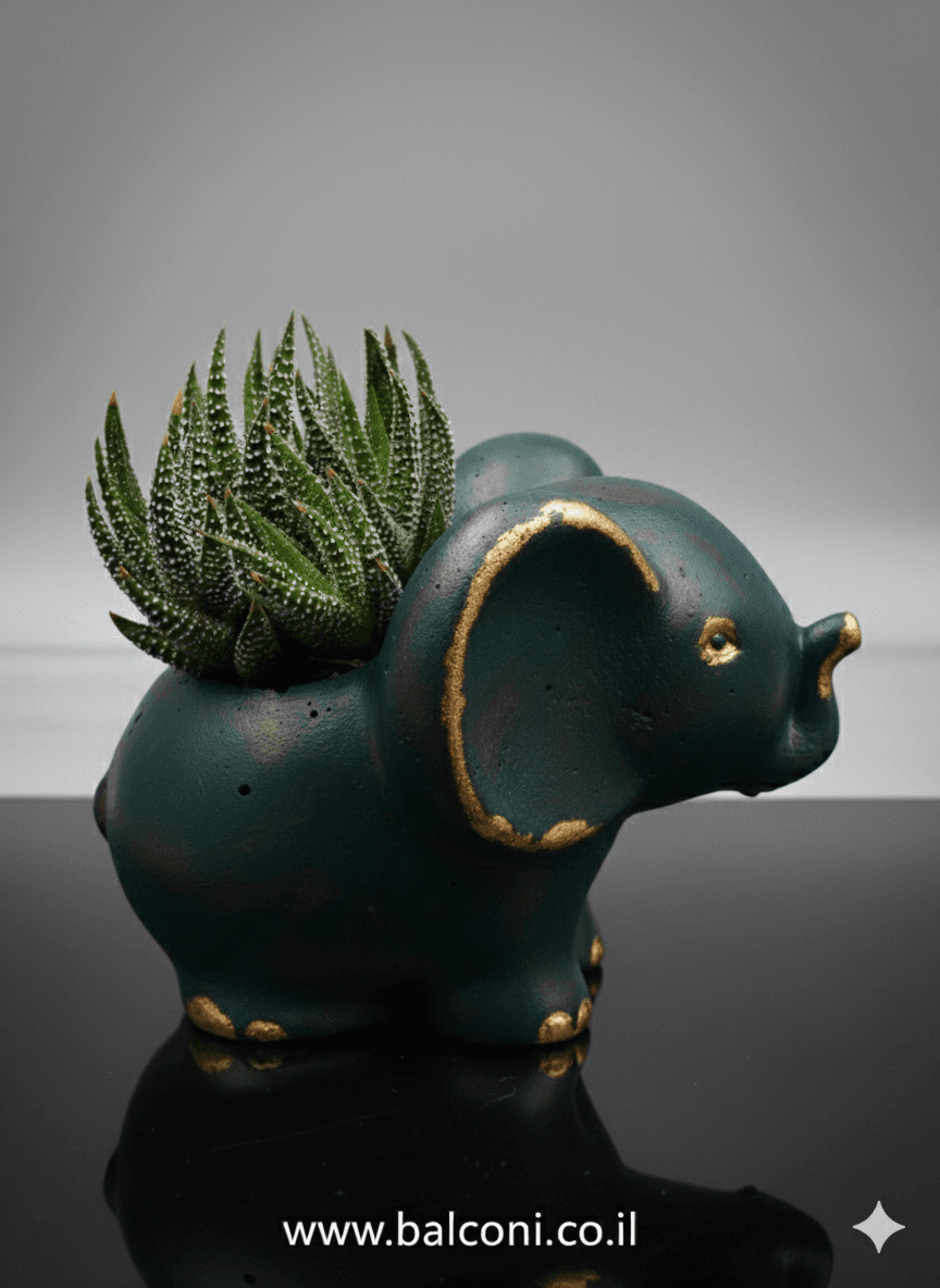 יצירת בטון בעבודת יד בצורת פילפילון 🐘. באיסוף עצמי ניתן לקבל את יצירת הבטון בשלל צבעים, במשלוח תשלח יצירת הבטון בצבע אפור בתוספת צמחייה מהממת וחיפוי אבנים יפות.