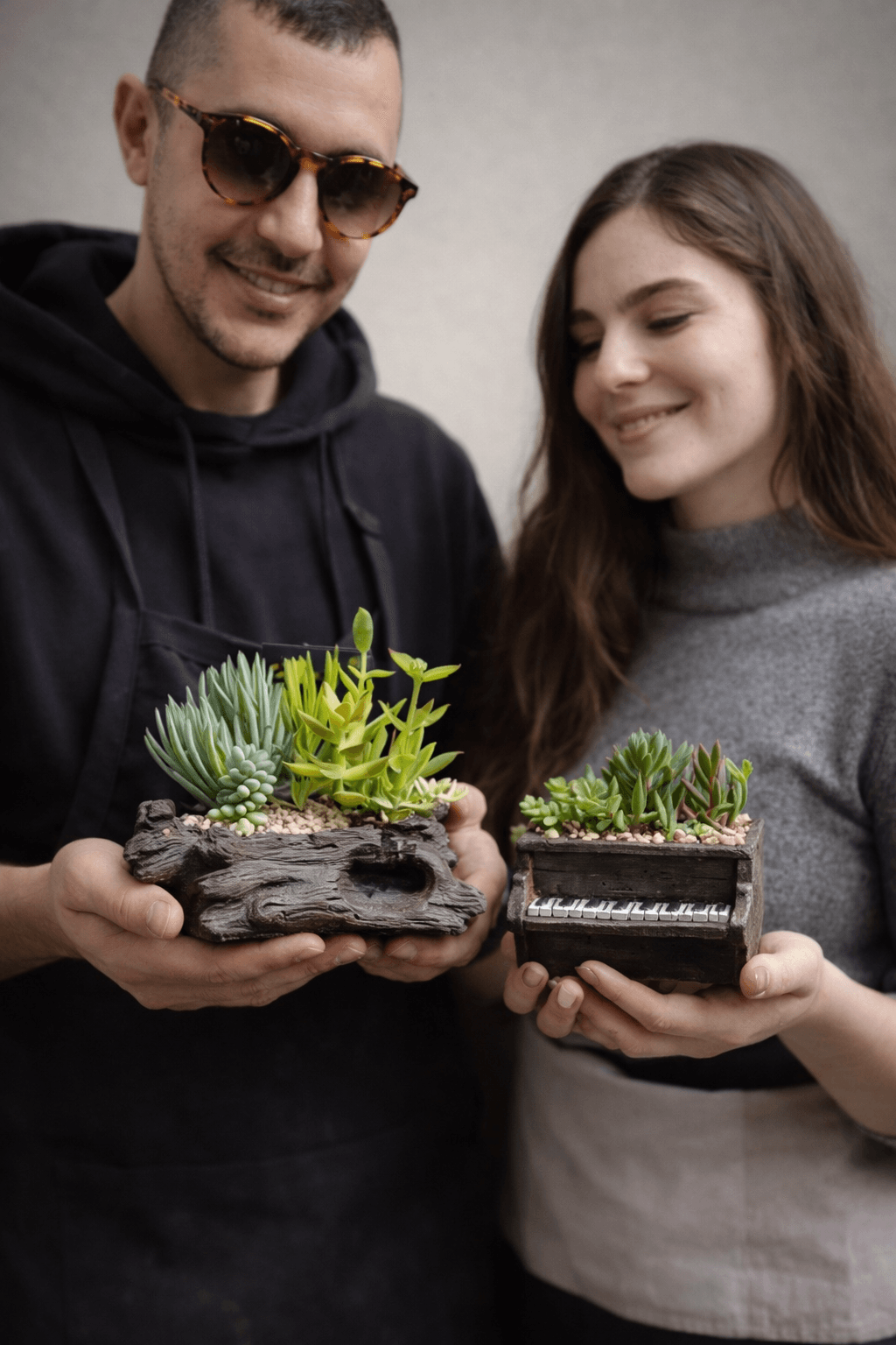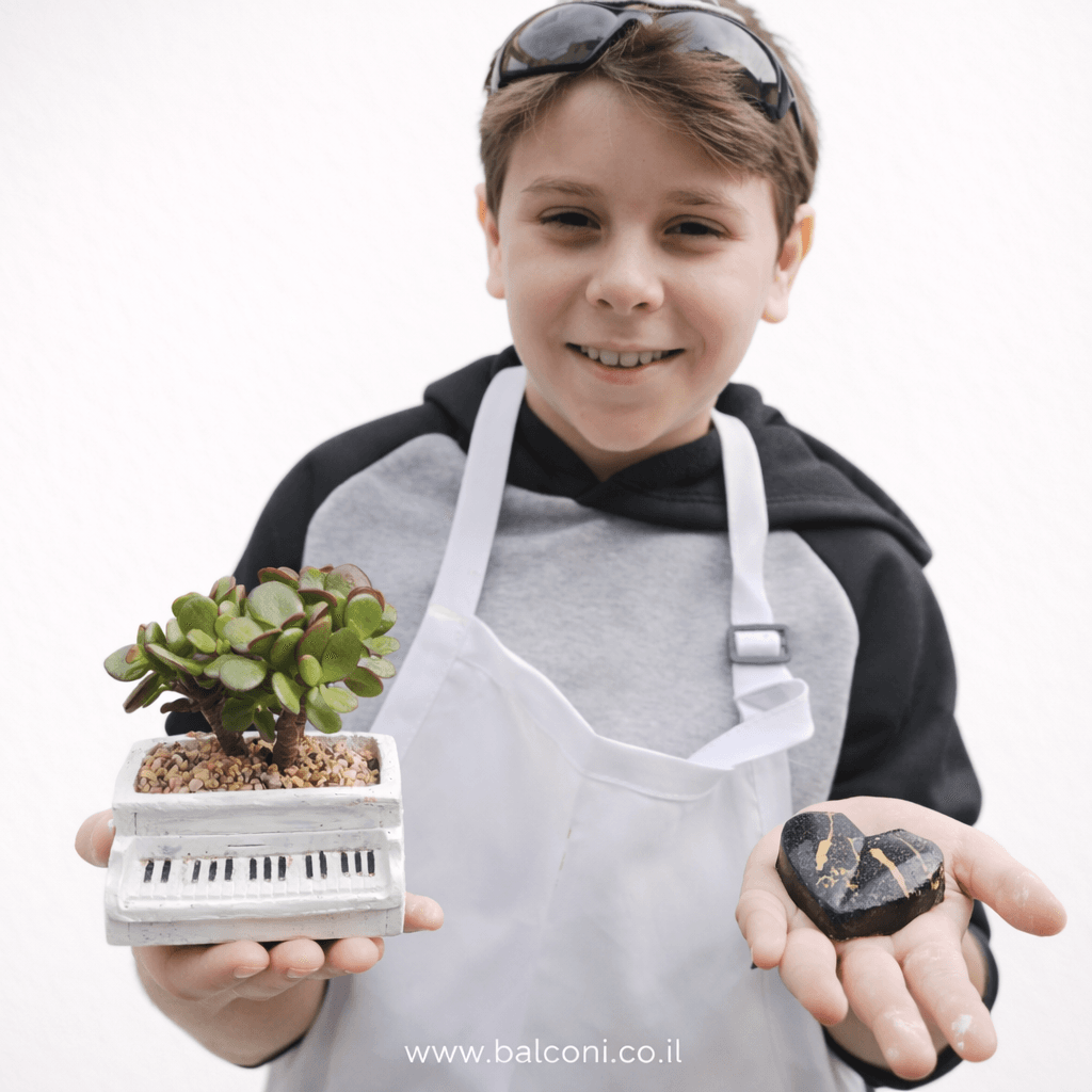 יצירת בטון בעבודת יד בצורת פסנתר. ניתן לקבל את יצירת הבטון במגוון צבעים, בתוספת צמחייה יפהפייה וחיפוי אבנים יפות. 🎹🌿🌼