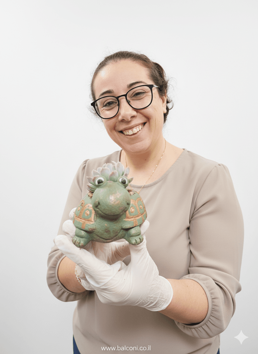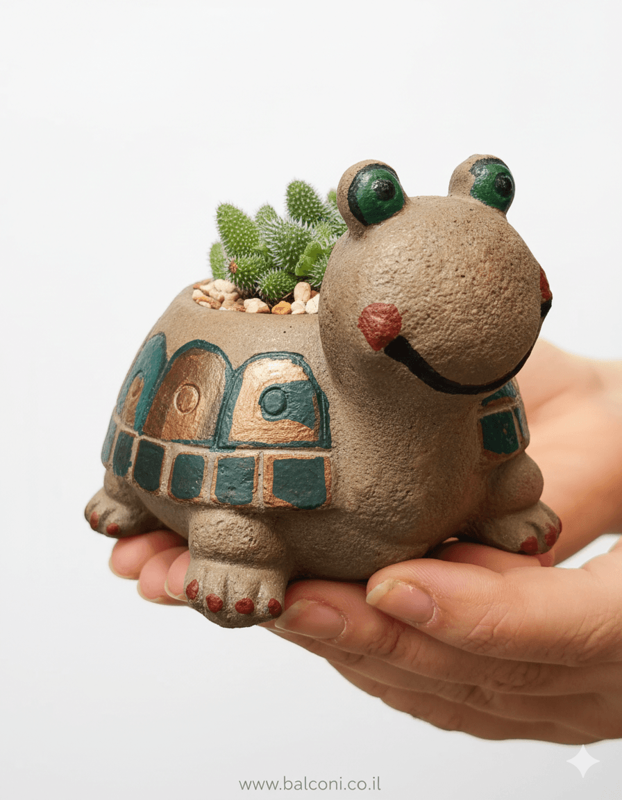 יצירת בטון בעבודת יד בצורת צב. באיסוף עצמי ניתן לקבל את יצירת הבטון בשלל צבעים במשלוח תשלח יצירת הבטון בצבע אפור בתוספת צמחייה מהממת וחיפוי אבנים יפות.