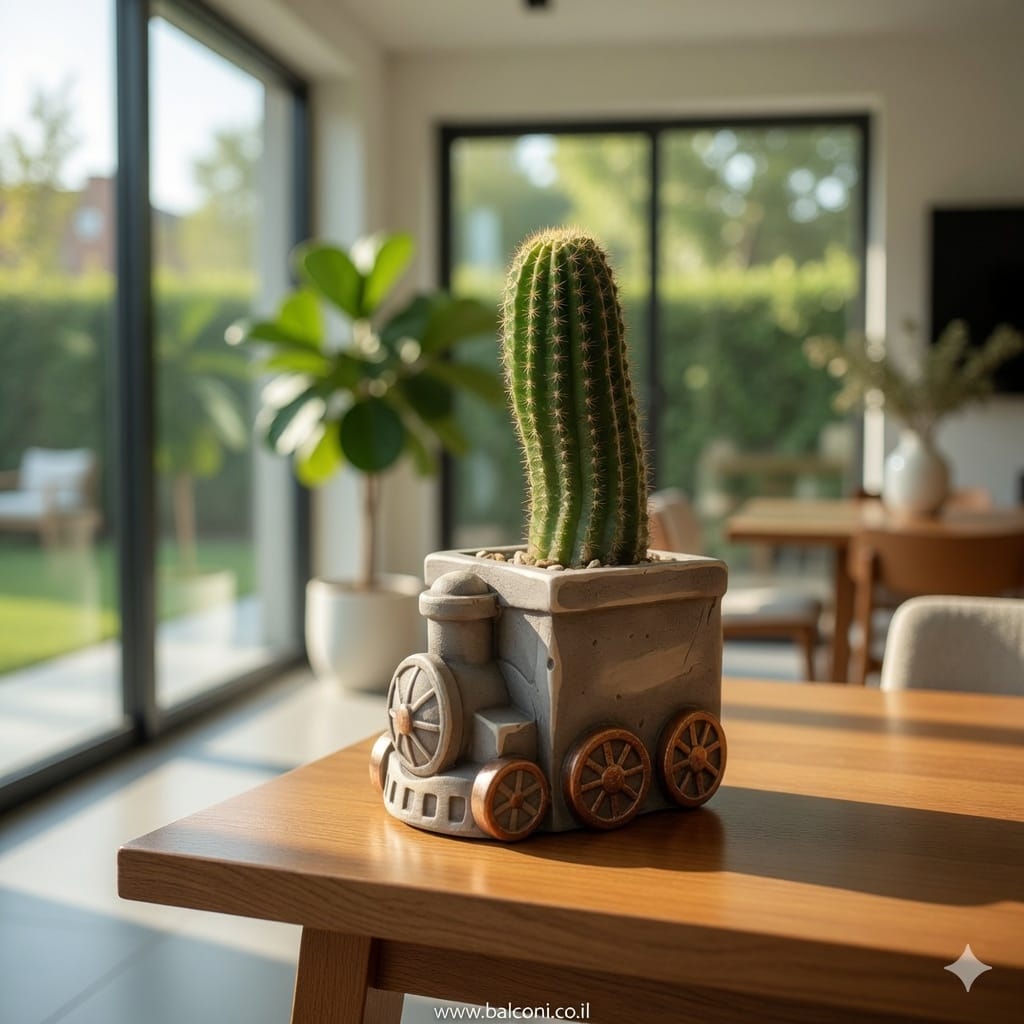 יצירת בטון בעבודת יד בצורת קטר רכבת 🚂. באיסוף עצמי ניתן לקבל את יצירת הבטון בשלל צבעים, במשלוח תשלח יצירת הבטון בצבע אפור בתוספת צמחייה מהממת וחיפוי אבנים יפות.