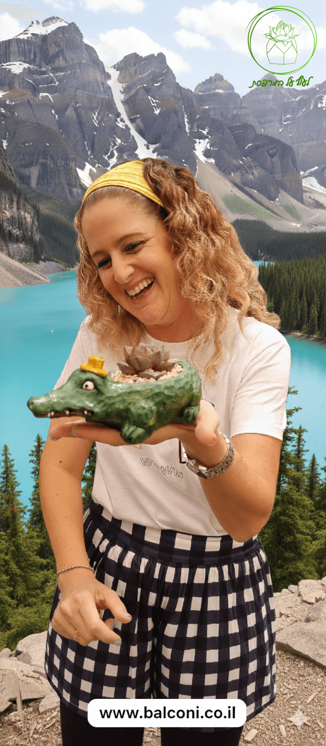 יצירה מבטון בעבודת יד בצורת תנין 🐊 בשילוב צמחייה עמידה וחיפוי אבנים. 🪨